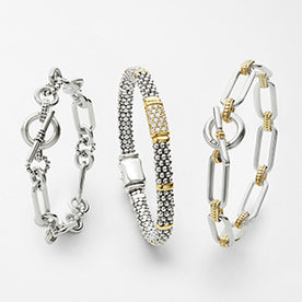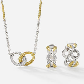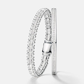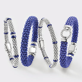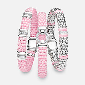 One of the most popular and innovative jewelry collections. Black ceramic Caviar beading polished to a high shine with sterling silver and diamond accents.